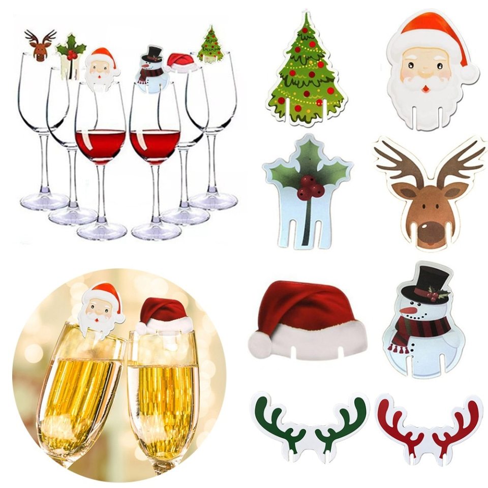 Christmas Cup Card Christmas Decorations Santa Hat Wine Glass Decor,10Pcs