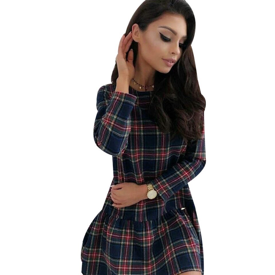 Popular Element:Plaid Splicing Ruffled Mini Dress