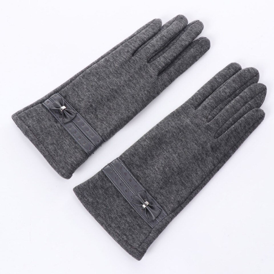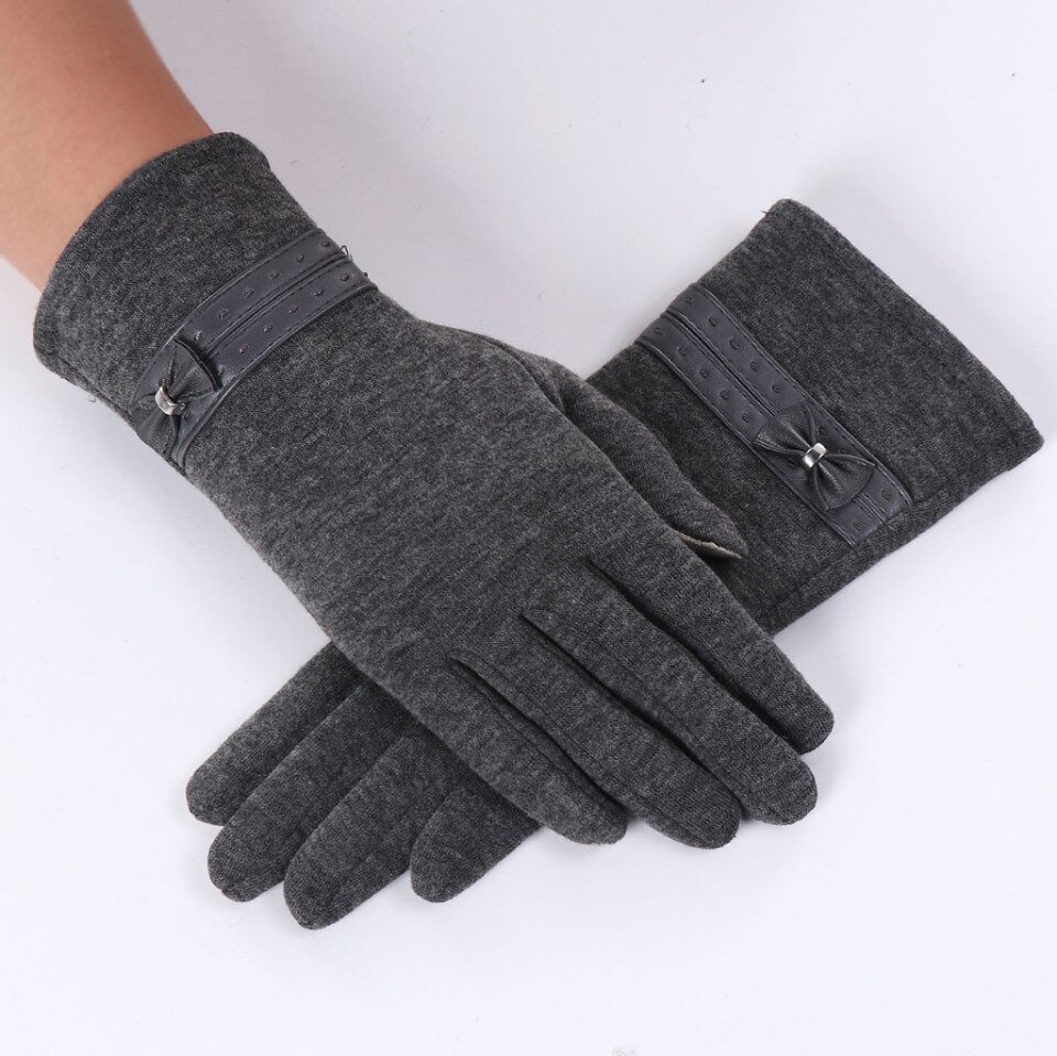 Women Ladies Winter Warm Bowknot Gloves Thicken Mittens