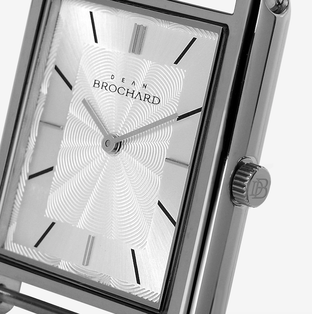 Our Legende series embodies the elegance and minimalism of traditional watchmaking, with pieces that make a subtle yet refined impression as the wearer moves through everyday life. The 31mm case is in silver plated polished stainless steel, with a sophisticated bright dial, it combines a minimalist rectangular shape with an emblematic background pattern inspired by the waves of the Azure Coast.