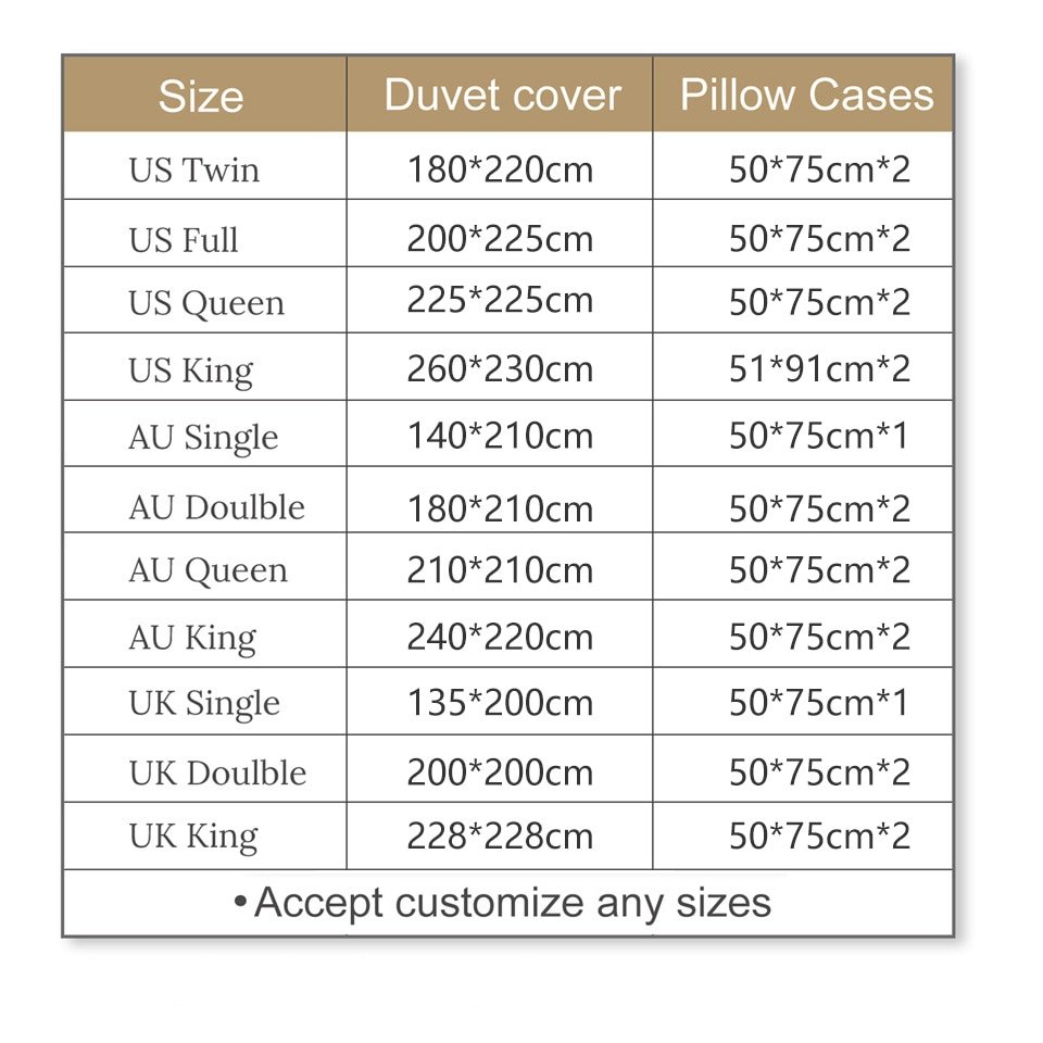 | Size | 260x230cm, 225x225cm, 200x225cm, 180x220cm |