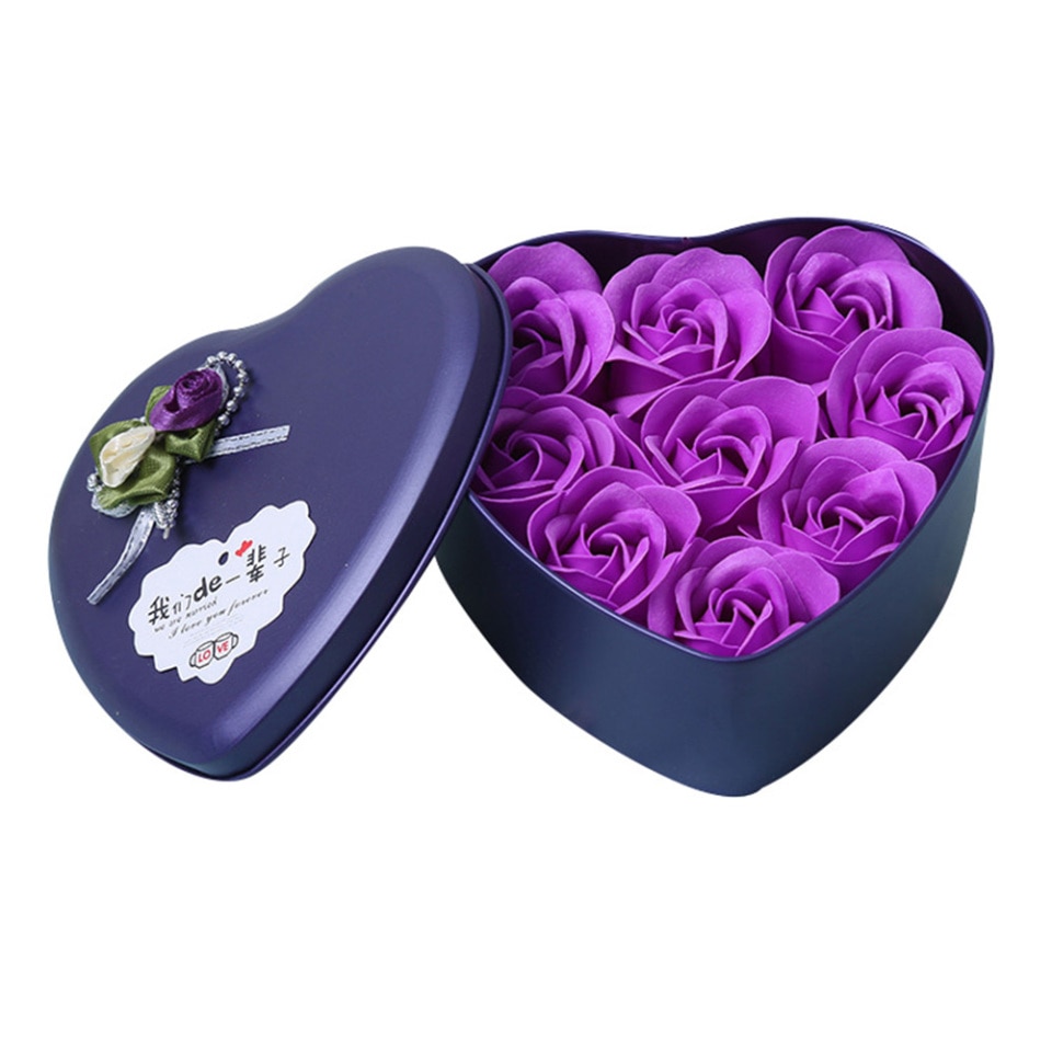 Specification: Name: 9 rose soap flower gift box Size: 14x14x6cm/5.5×5.5×2.36 inch Soap flower ingredients: sodium lauryl sulfate, polyvinyl alcohol, starch, glycerin, flavor, purified water, food coloring Packing: tin box Shelf life: properly preserved for 2-3 years (no dampness and no violence) Scenarios: gifts for lovers, gifts for girlfriends, gifts for yourself, home decoration, creative placement of study rooms, bedrooms, living rooms, etc. Color: Red, Pink, Purple, Blue, Multicolor
