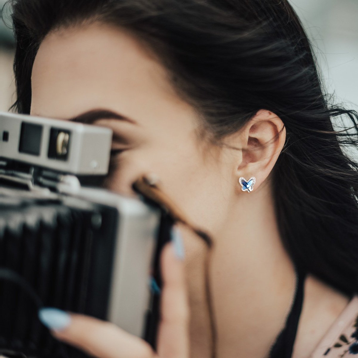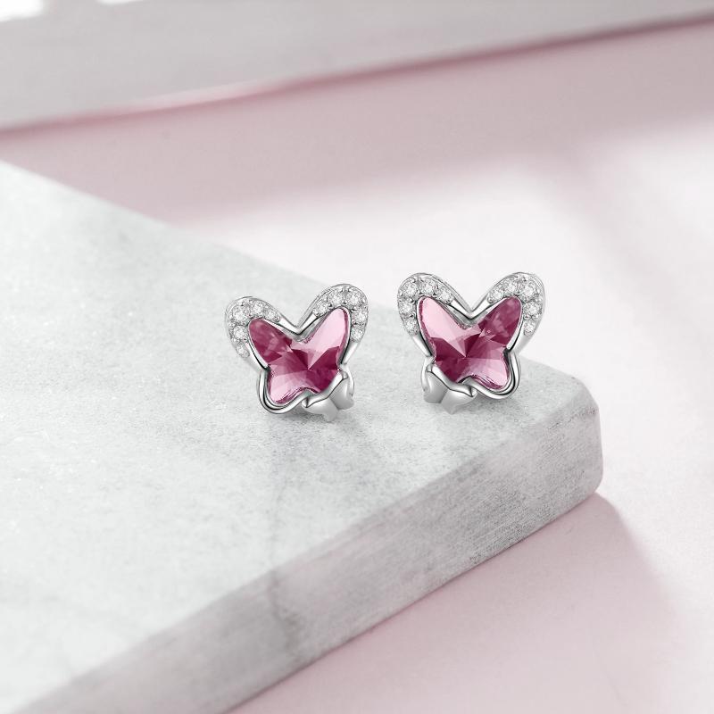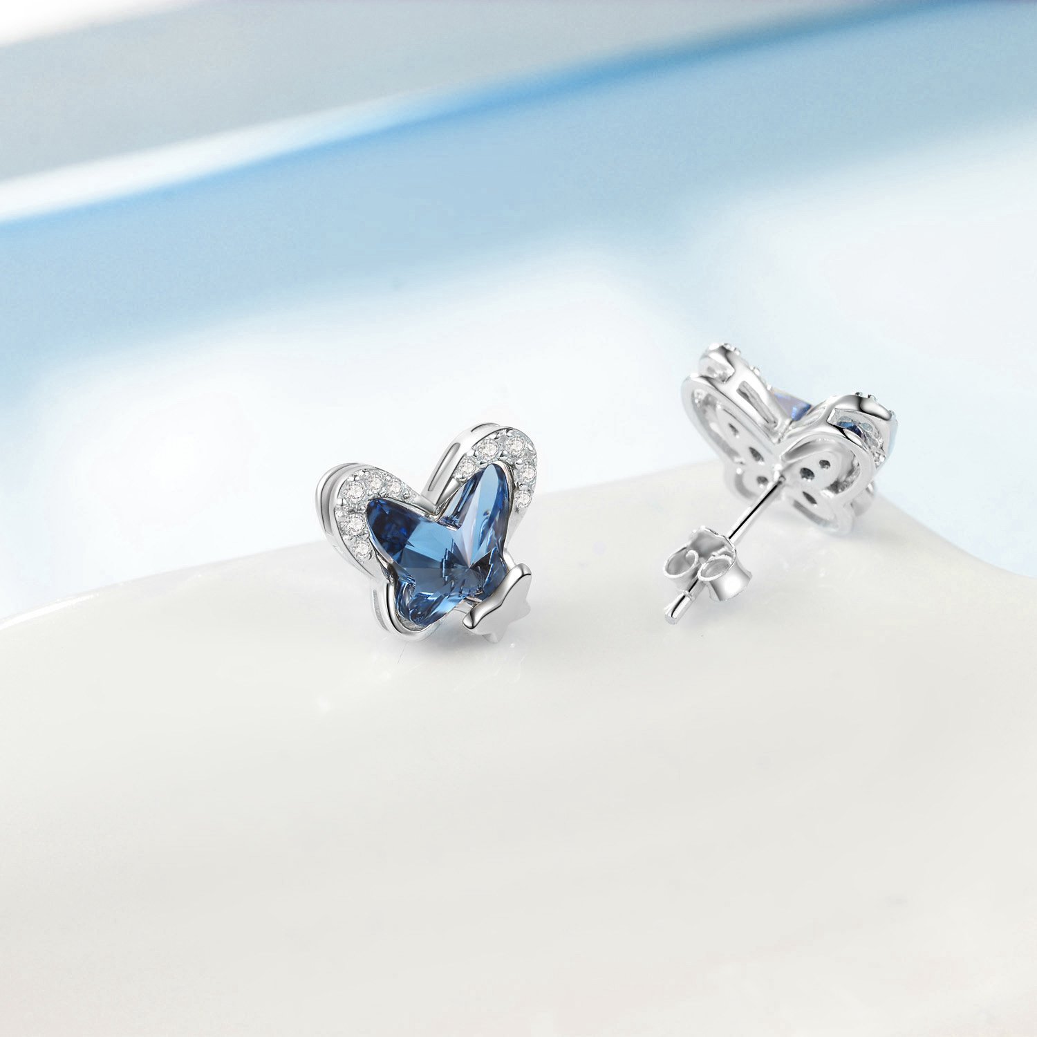 DESIGN CONCEPT: Two crystals butterfly stud earrings for women,mum and child. High quality, fashionable and luxurious. Perfect for young ladies who love nature and life