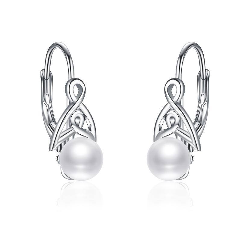 Pearl Earrings for Women 925 Sterling Silver Irish Celtic Knot Hoop Earrings Leverback Jewellery Gifts
