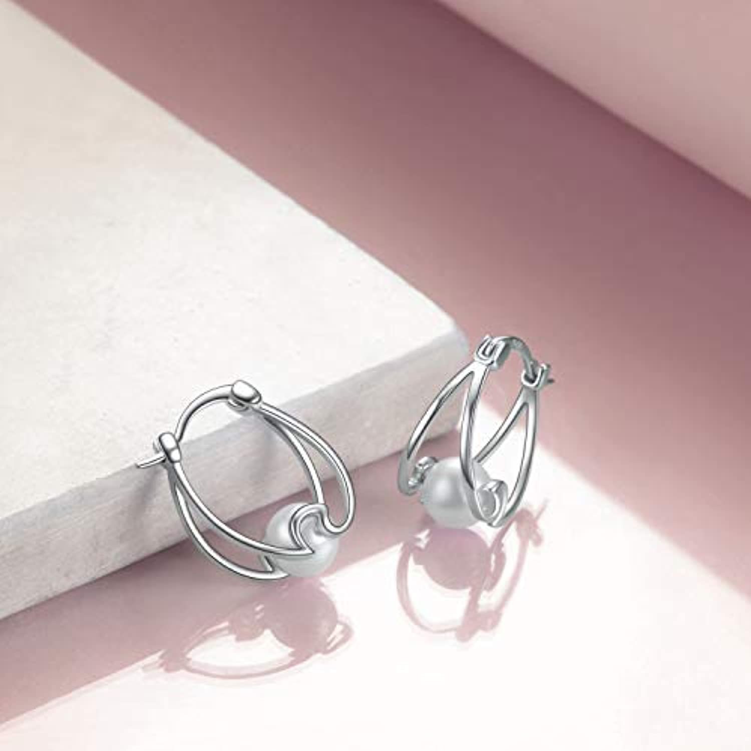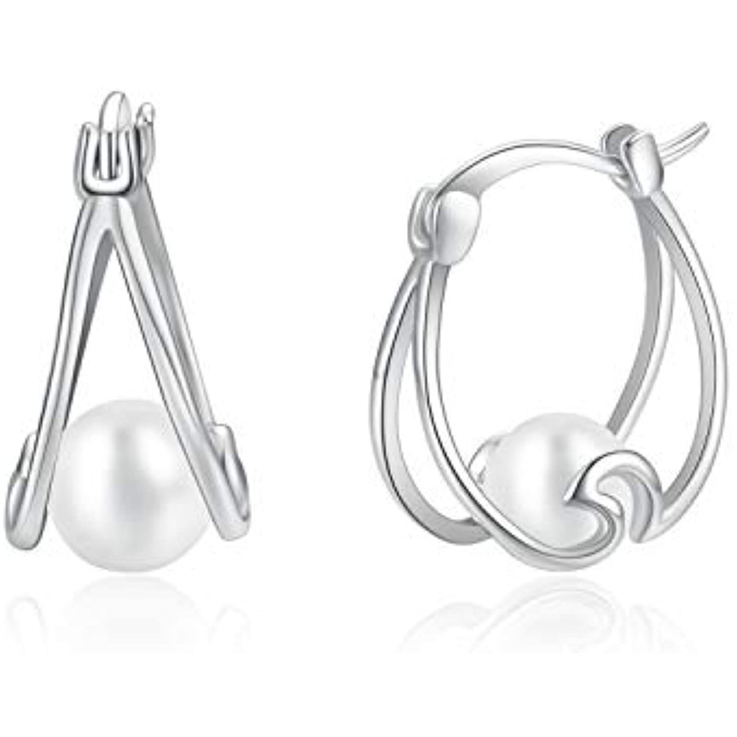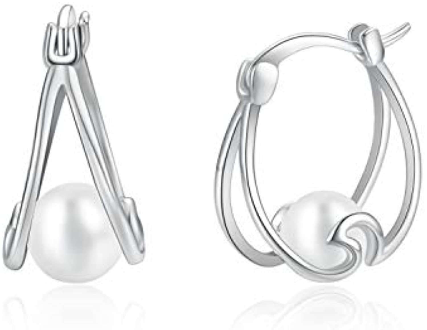 Design:Sterling silver wave small hoop earrings inlaid with pure white pearl .a exquisite unique gifts for Women.Elegant and fashion.